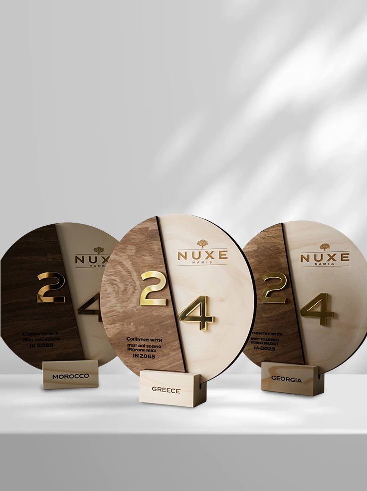 Nos trophées en bois sont une fusion parfaite entre nature et prestige, offrant une alternative élégante et écoresponsable aux récompenses traditionnelles. Chaque pièce est conçue avec soin, mettant en valeur la richesse des textures et des essences de bois, du chêne robuste au noyer raffiné. Le bois, matériau intemporel, apporte une touche chaleureuse et authentique, idéale pour des distinctions valorisant l’excellence et l’engagement.